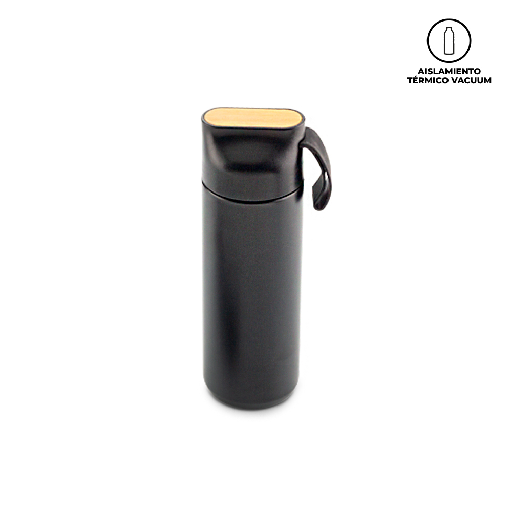 Set ecológico de botilito doble pared vacuum en acero inoxidable reciclado, con aislamiento térmico que mantiene la bebida fría o caliente hasta 6h, aprox (puede variar dependiendo condiciones climáticas). Con tapa rosca y detalle en bambú y Mini paraguas de 21″ en poliéster reciclado RPET, con apertura automática, mango en caucho, herraje metálico. Con forro. Empaque caja individual.