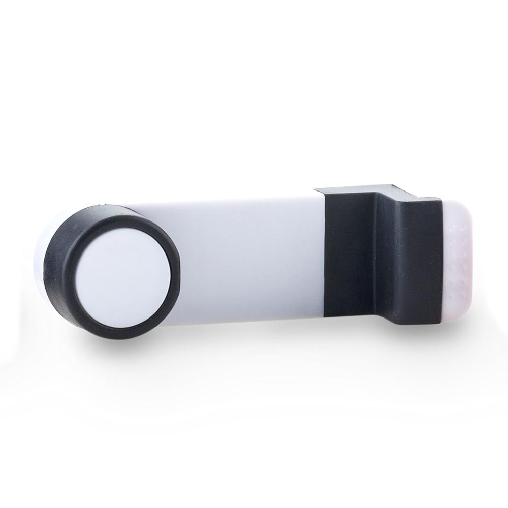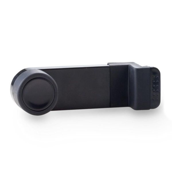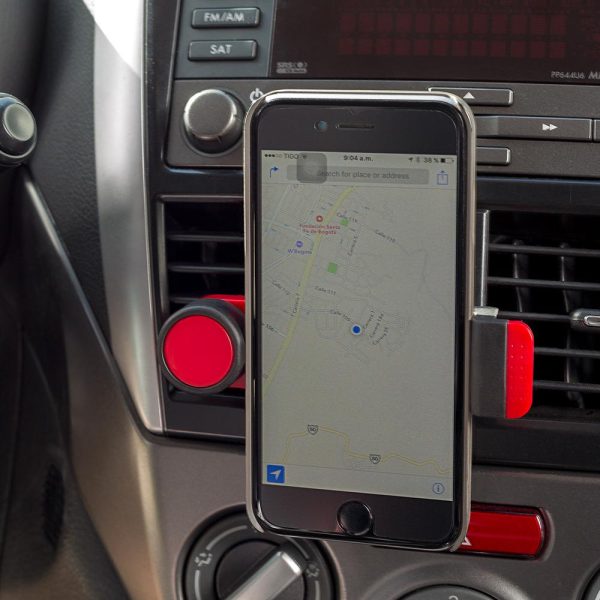 Soporte ajustable para móviles, se fija en la rejilla del ventilador de carro.