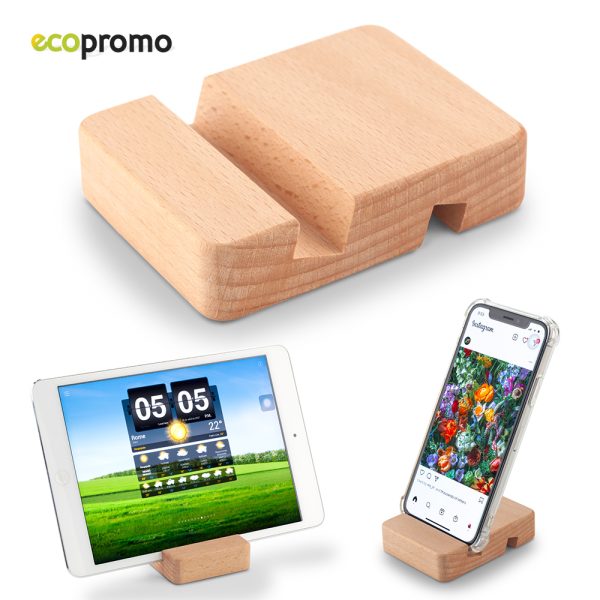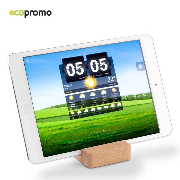 Base en bambú para dispositivos móviles. Dos posiciones para colocar adecuadamente el dispositivo.