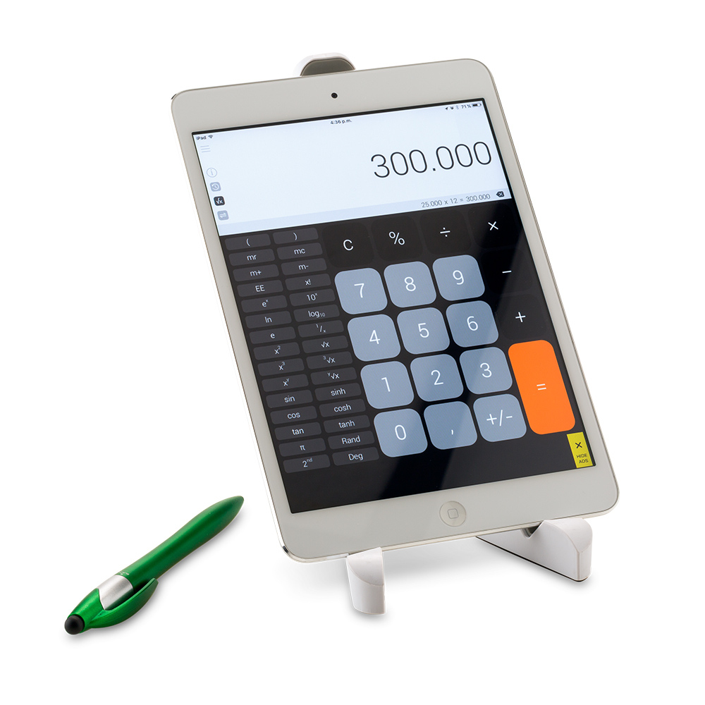Soporte plástico para tablet. Antideslizante y ajustable. Empaque Caja Individual.