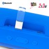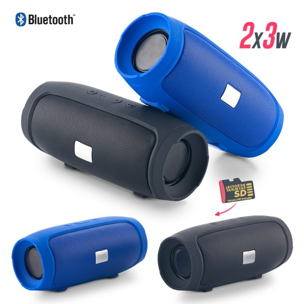 Speaker bluetooth plástico con acabado caucho, 2x3W, Lector de tarjeta SD y USB (no incluidas). Potencia de salida: 2×3 W. Entrada: 5 V / 0,5 A. Batería: 1200 mAh / 3,7 V. Rango de frecuencia: 70Hz-18 KHz. Incluye placa metálica para marca. Empaque caja individual.