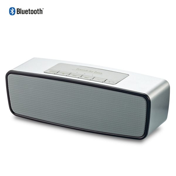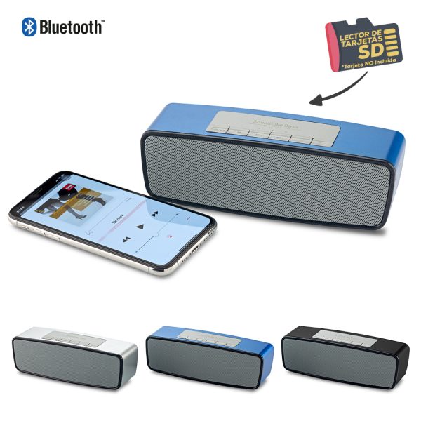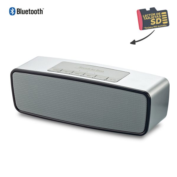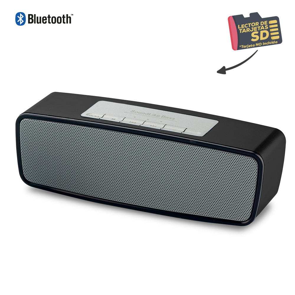 Speaker Bluetooth 2X3W. Funciona como manos libres. Lector de tarjeta SD y puerto USB (no incluidas). Funciona como auxiliar de sonido en modo AUX. Empaque caja individual.