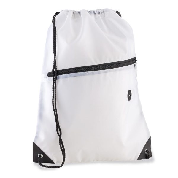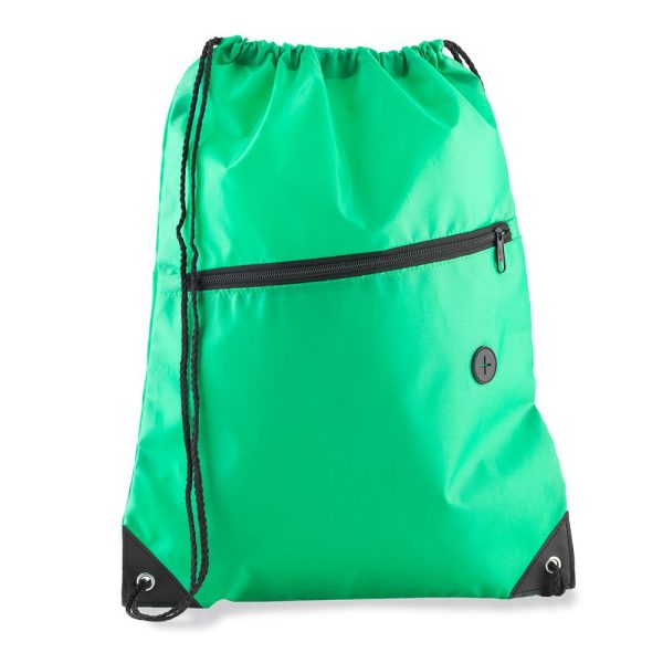 Tula morral en lona poliéster 210D con bolsillo y salida para audífonos.