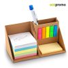 Set de portastickies de cartón con forma de cubo. Tacos de hojas autoadhesivas (grande 500 hojas aprox / pequeño 25 hojas aprox). 5 stickies de colores. Espacio portabolígrafos (no incluye bolígrafo).
