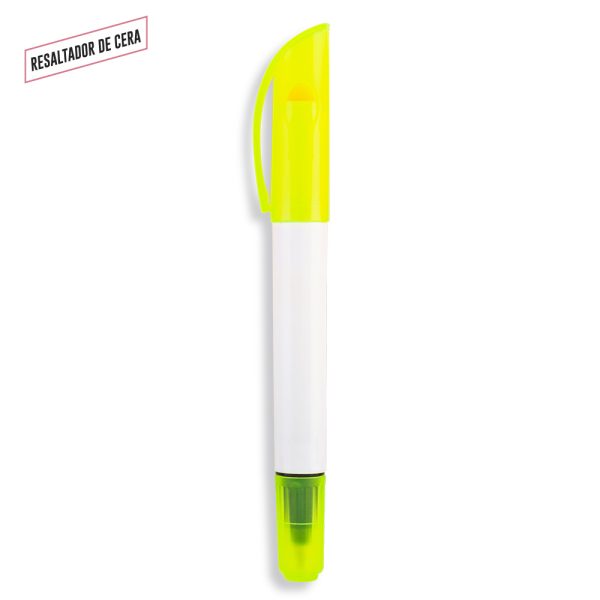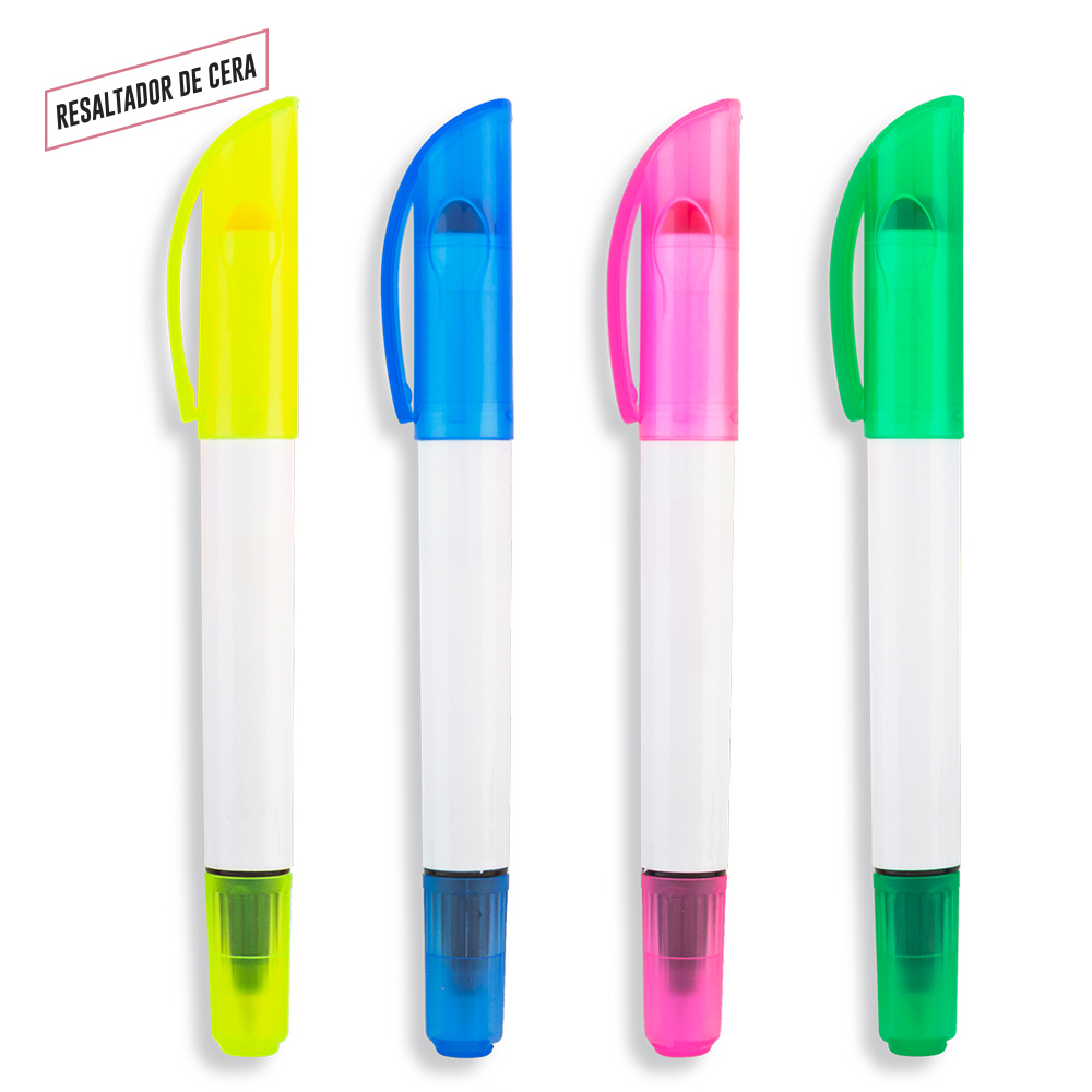 Bolígrafo plástico con resaltador de cera. No se seca.