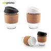 Vaso en vidrio de borosilicato de alta calidad, con tapa en silicona y aro en corcho. Empaque caja individual.