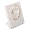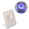 Ventilador plástico portátil y recargable. Batería de 1200 mAh. Tres velocidades. Soporte para mesa. Entrada para cargar tipo Micro USB. Incluye cable para cargar la batería. Empaque caja individual.