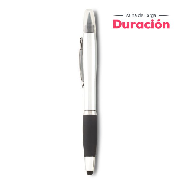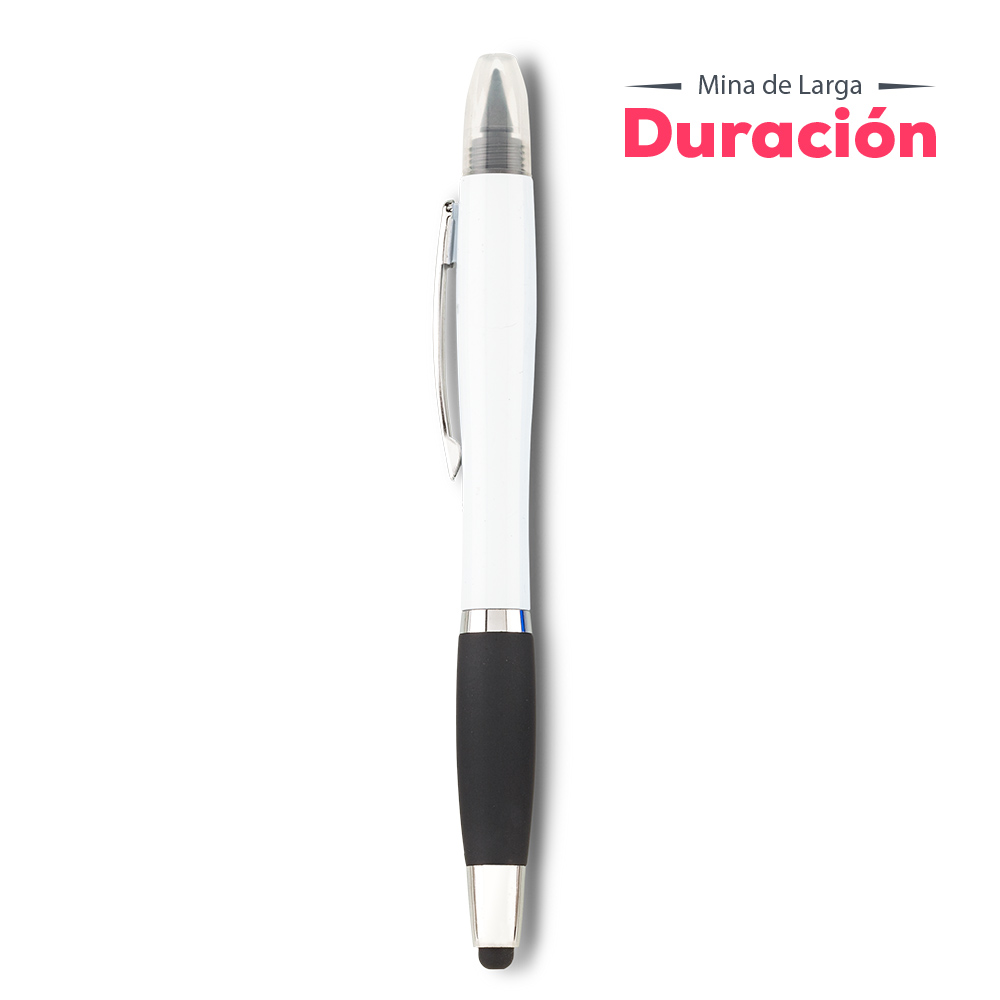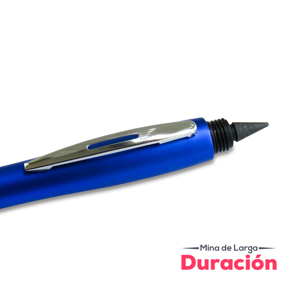 Bolígrafo plástico con stylus, borrador y lapíz infinity. Este producto funciona de una manera innovadora, con una mina que no se acaba fácilmente, no necesita usar tajalápiz. La punta frota el papel para descomponer las moléculas de grafito y dejarlas en la superficie de papel; el lápiz borrable se puede aplicar en la mayoría de los papeles, y la escritura a mano se puede mantener durante mucho tiempo independientemente de la temperatura o las condiciones climáticas. Entre más suave sea el trazo, más fácil será de borrar.